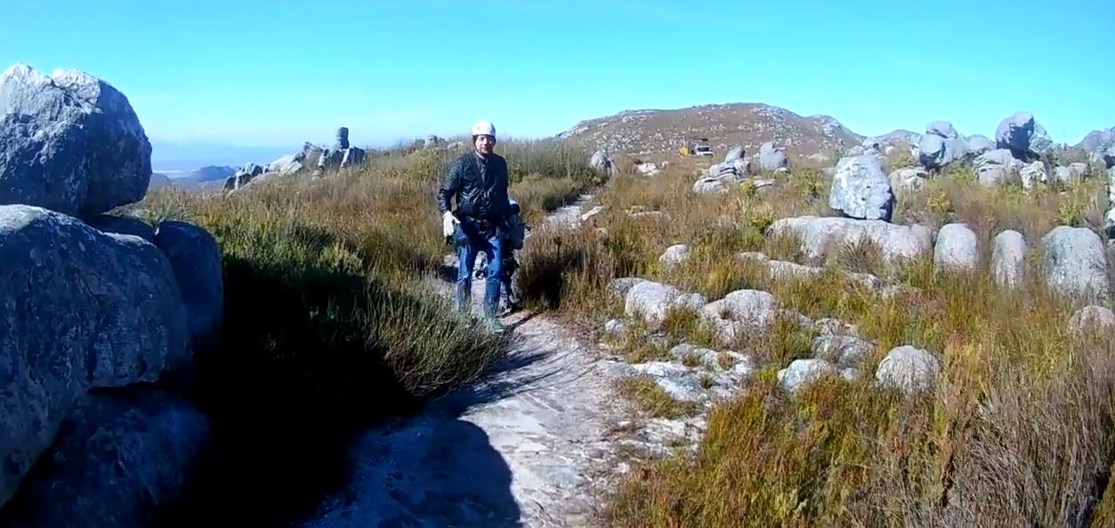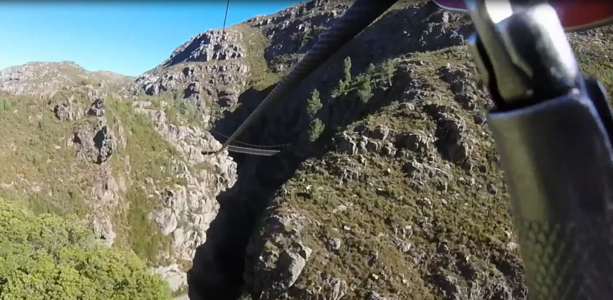 Und so manche der Ziplines haben es schon in sich, da es echt schnell hinunter gehen kann. Doch dafür haben wir ja unsere Handschuhe an, um am Ende der Fahrt etwas bremsen zu können sofern wir zu schnell aufs Ziel zurasen sollten. Oder wie Tommy es charmant sagt: Wenn wir nicht rechtzeitig bremsen wird aus uns ein Buschmann-Höhlenbild und unser Gesicht in den Hottentots Hollands verewigt. Denn in diesen Bergen kann man auch Wandbilder der Ureinwohner, den KhoiSan, entdecken. Doch wir können sicher darauf verzichten, unser Gesicht in Stein zu meißeln. Und das Bremsen mit dem Handschuh funktioniert auch sehr gut.