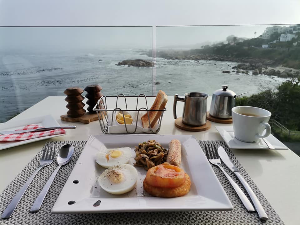 Am nächsten Morgen gibt es neben der Dachterrasse erstmal Frühstück. Und auch bei einem English Breakfast darf der Blick auf den Atlantik nicht fehlen, wobei sich hier morgens noch oft der Nebel über Camps Bay legt. Doch ein Essen mit Meerblick ist immer ein Genuss und in diesem Fall der Abschluss einer tollen Hotelnacht in Camps Bay.